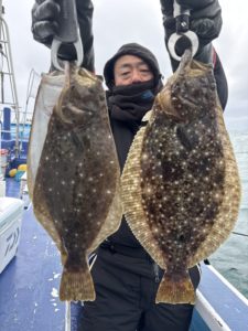 【ヒラメ】0.5〜4.25kg / 0〜3枚【外道】 無し ★定休日明けの今日〜昨日からの北東の🎐風強く💦明るくなってからの出船となりました😓太東〜大原沖9〜15mを攻めま […]