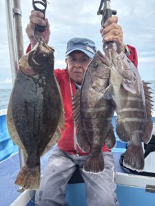 深場で良型ヒラメ&マハタ(1.2〜3.2kg)3匹GETしてお土産になりました✌️